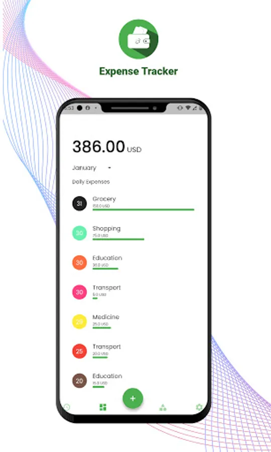 By default Khorchapati (খরচাপাতি) tracker app has some expense categories like Shopping expenses, Transport expenses, Medicine expenses, Education expenses. Users can set the currency and customize the expense tracker apps theme.