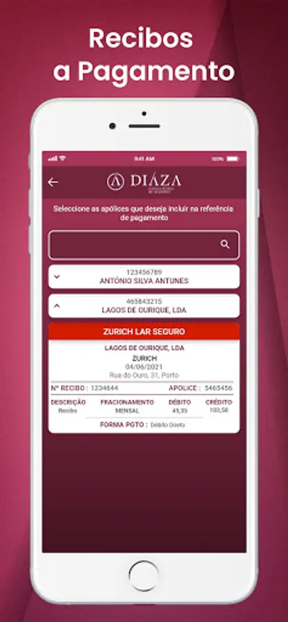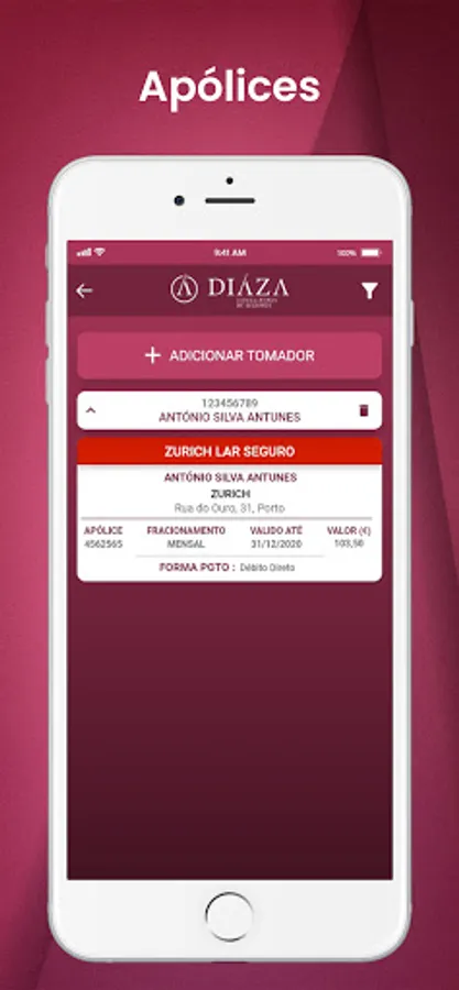 Consultation of policies in force in all companies, Consultation of receipts paid and in payment, Consultation of claims being processed and closed, Direct claim participation in each policy, Generate references for payment of receipts, Possibility of managing the portfolio of several different NIF's ,Get notifications via APP or email,Customizing your account,Touch and Face ID to login to the APP,Contacts.