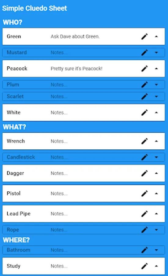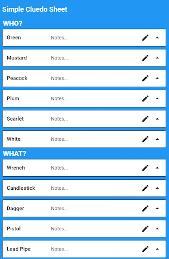 You can rename weapons, rooms and suspects to match your region version of Clue. Simply click the text you wish to change.