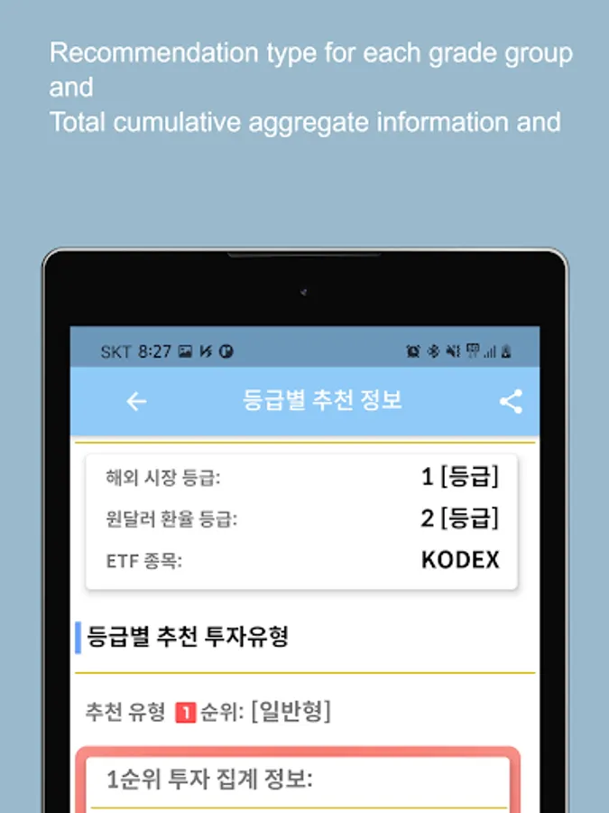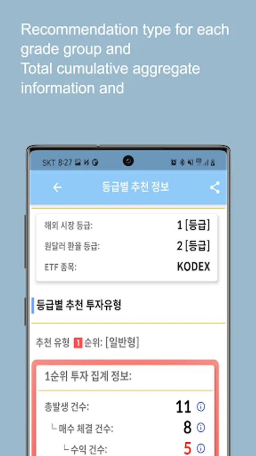 Through the derived investment information by grade, it provides users with the best probability investment information for each day through data.