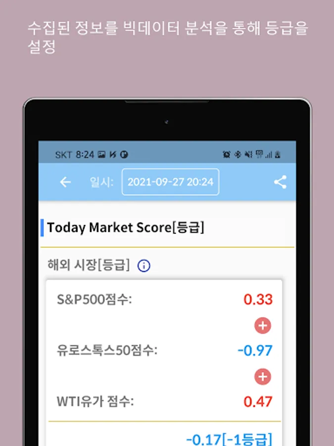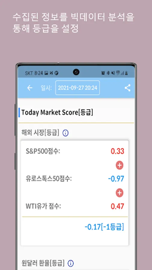 After calculating the score by taking into account the degree of impact on the Kospi for each index, the score is graded according to the range of scores.