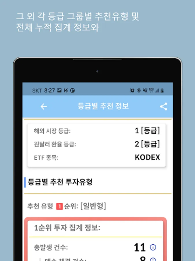 Through the derived investment information by grade, it provides users with the best probability investment information for each day through data.