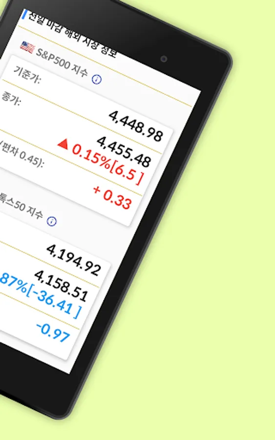 - Provides detailed investment information for each overseas market and won-dollar exchange rate