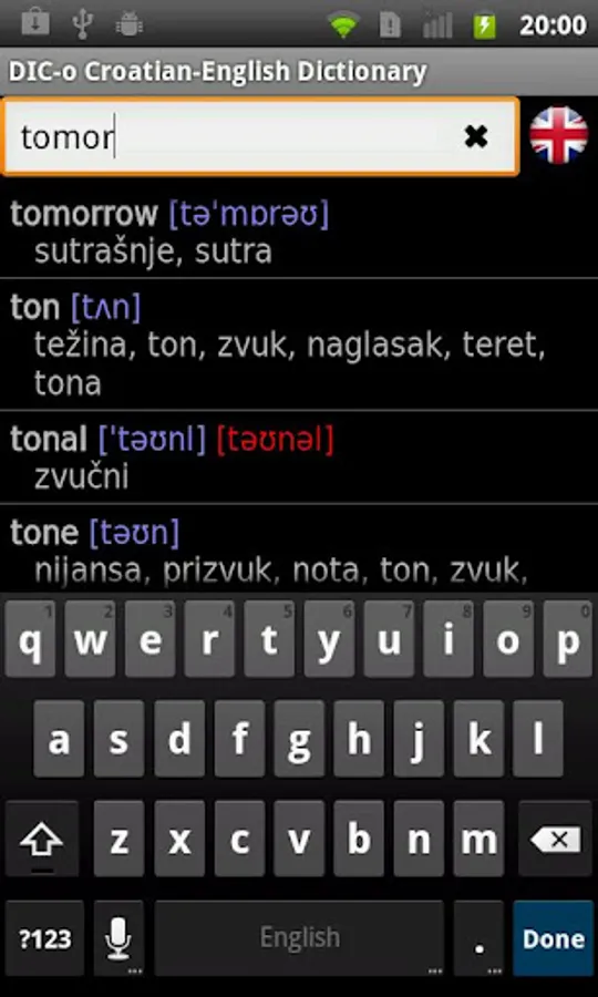 DIC-o Croatian - English and English - Croatian off-line dictionary with pronunciations (52000 translations).