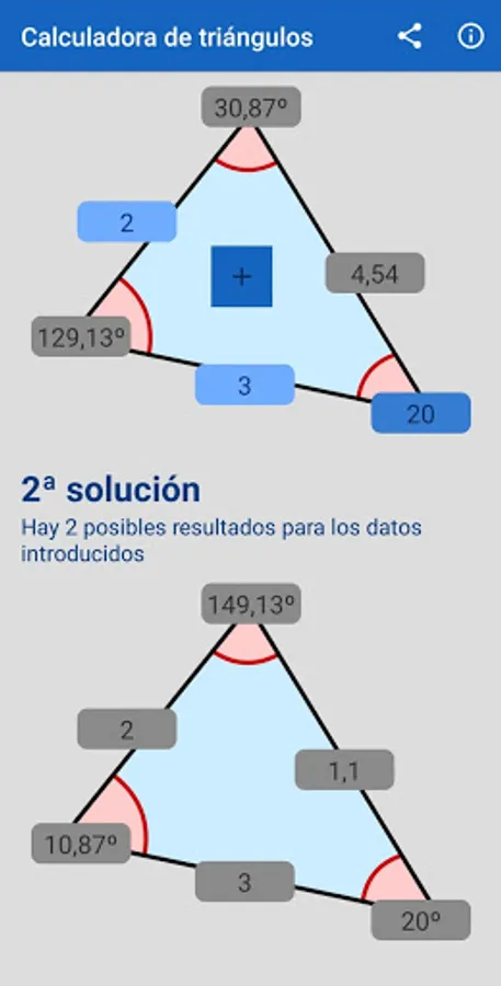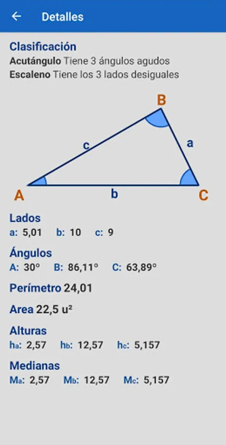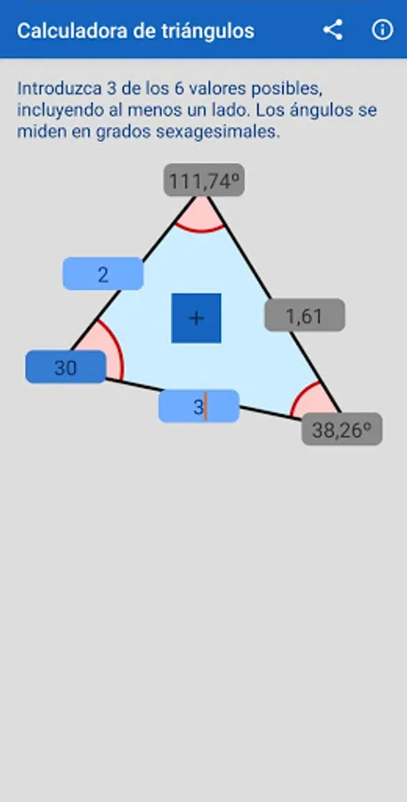 Extremely easy to use. Just enter 3 values. The details of the triangle and its possible variants are obtained.