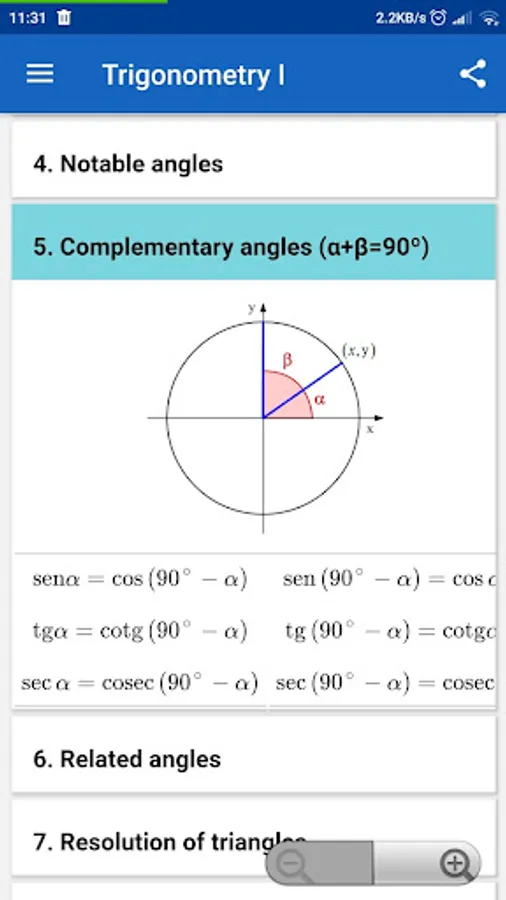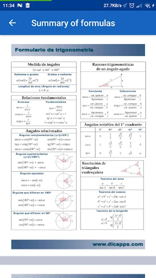 Complete list of trigonometry formulas. Definitions, Sine and Cosine theorems, Goniometric Circumference, double angle ratios, trigonometric equations and much more.