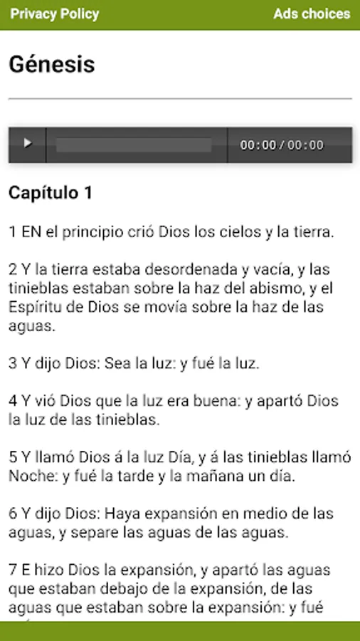Audio Bible: Listen to the Bible in Spanish while you travel, rest or do your daily activities. Clear and accurate narration will allow you to immerse yourself in the scriptures without distraction.