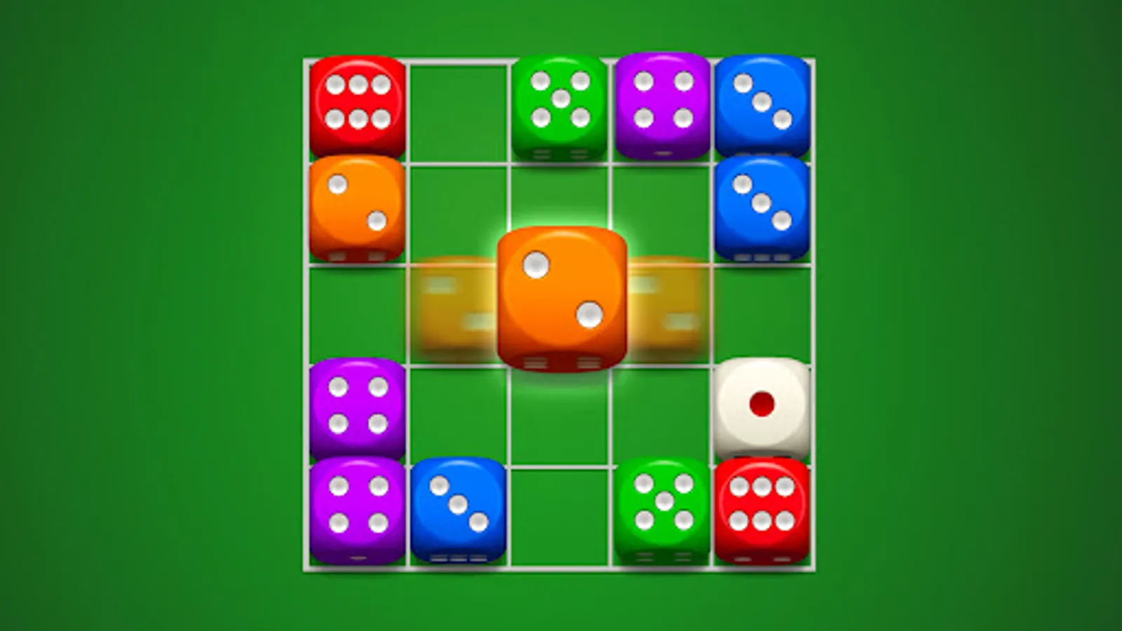 ▶ Match three or more dice with same dot or same number, to merge them horizontally, vertically, or both into a higher value.