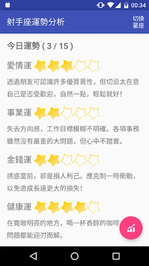 星座運程走勢圖:了解近期的運勢變化狀況,可提前因應參考。