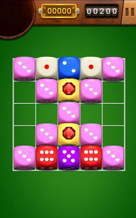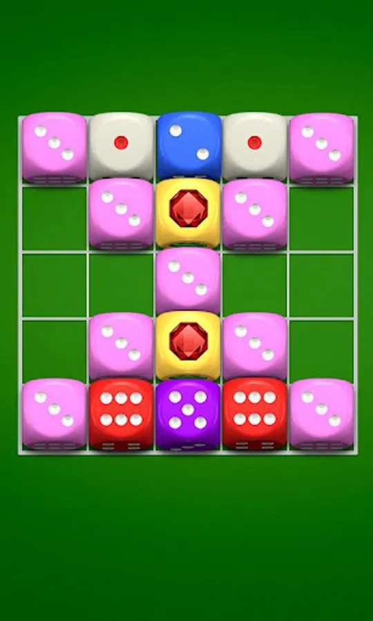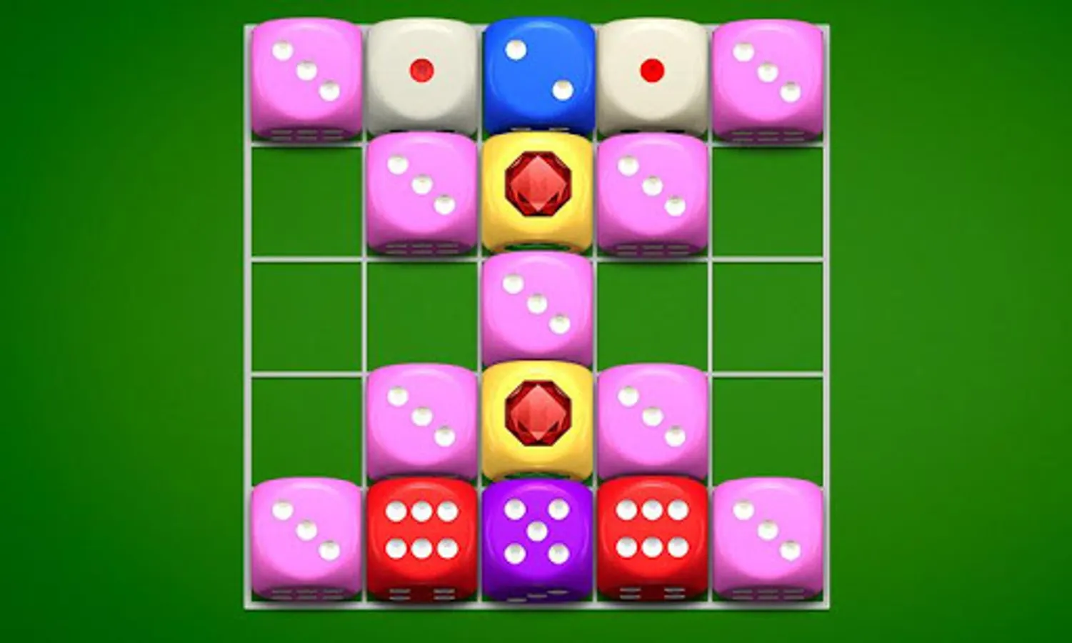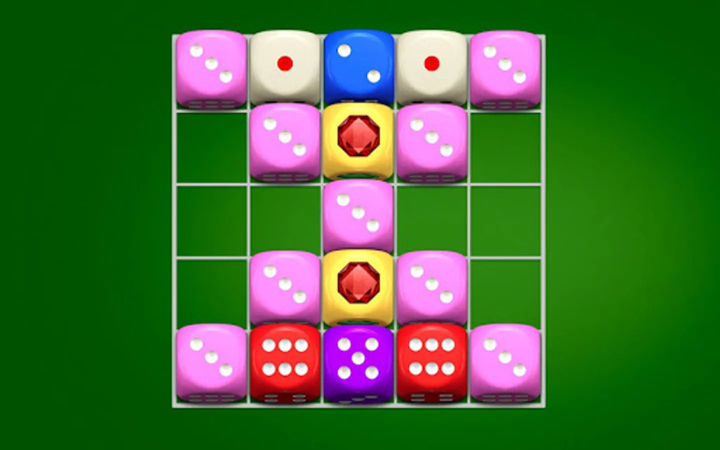 Three 6 dots dice can be merged to a jewel cube dice. It's a magic dice. Merge three jewel dice can crush 3x3 nearby dices.