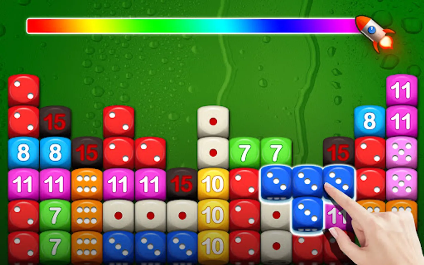 -Combine 3 of the same dices to merge them into a bigger dice!