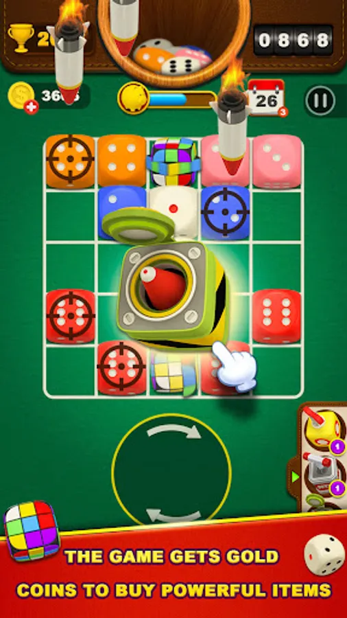 ▶8. The game is over when game puzzle board has no place for putting more dice or cube!