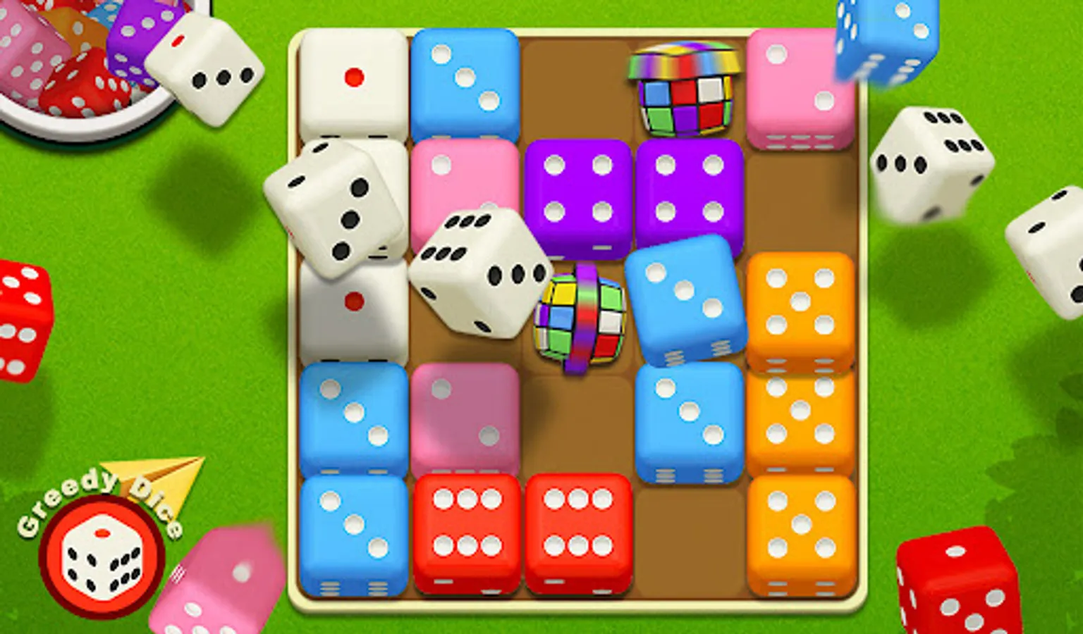 Dice Merge - Greedy Dom Puzzle is a amazing dice merge game. It's so easy to roll the dice and merge three same dices into one! Unlock magic skills to match dice with friends.