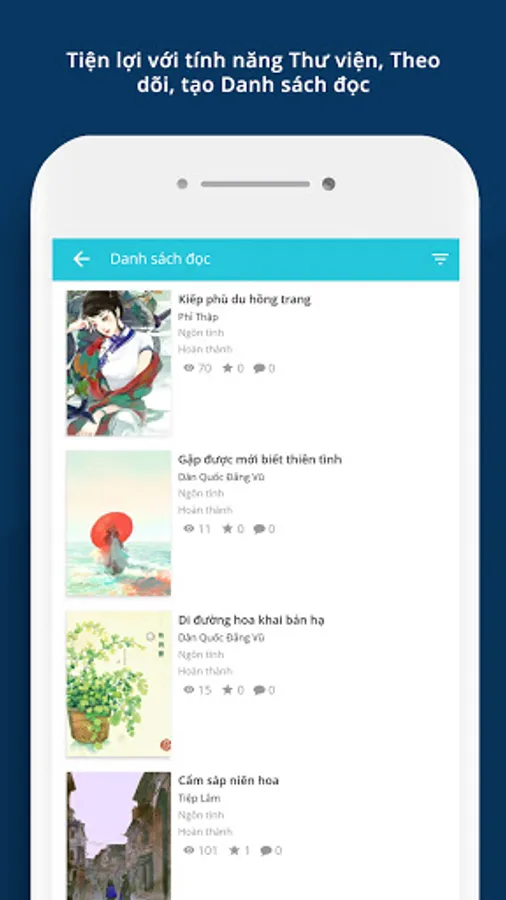 - Bookmark chương đang đọc, tạo danh sách đọc