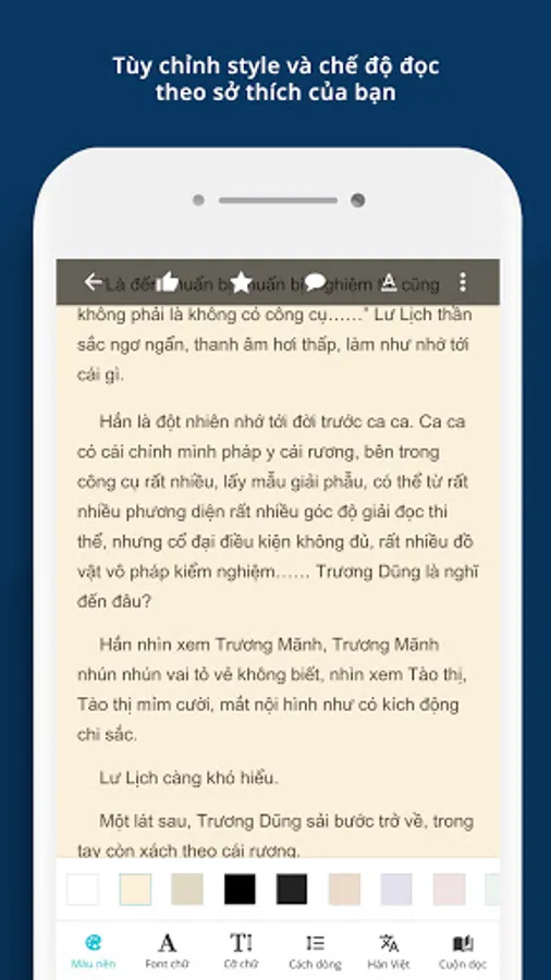 - Tự phối màu nền, kiểu chữ, cỡ chữ khi đọc truyện