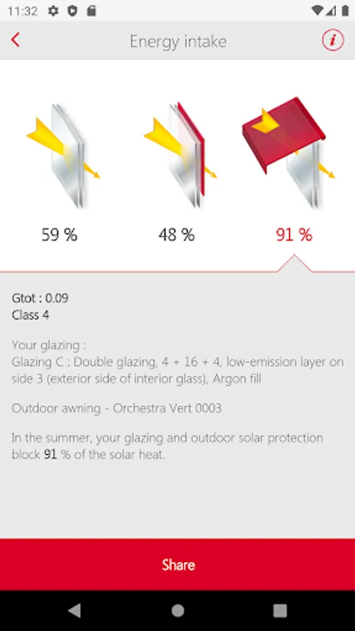 Solar Estimate calculates energy intake of a glazing with a Dickson® or Sunbrella® solar protection.