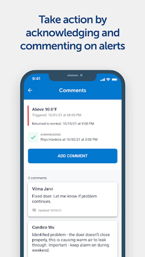 - Comment on alerts and record what, why, and how an alert occurred — along with how it was fixed