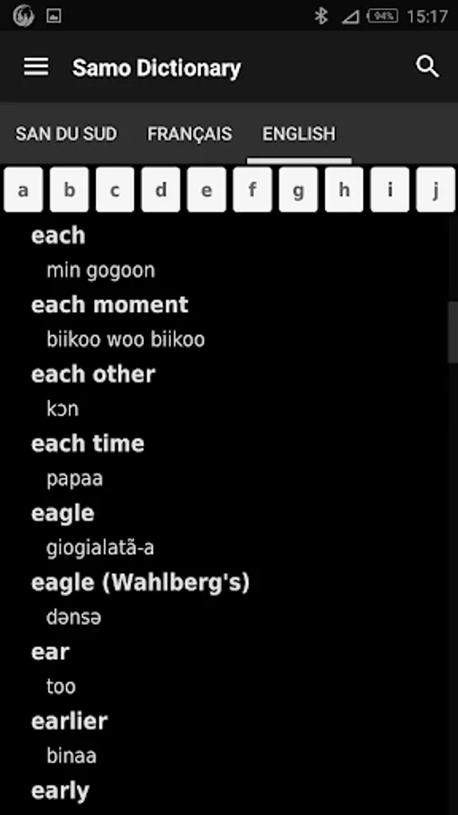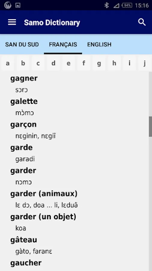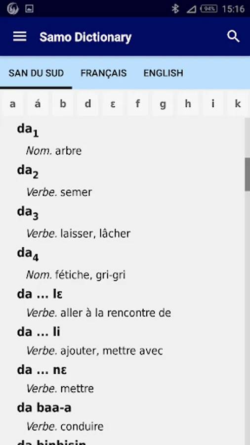 The purpose of this lexicon, based on the san spoken in the southern region (mà kaa), is first and foremost to help sanphones to write their mother tongue well. We hope that it will be used by literacy educators as a reference lexicon.
