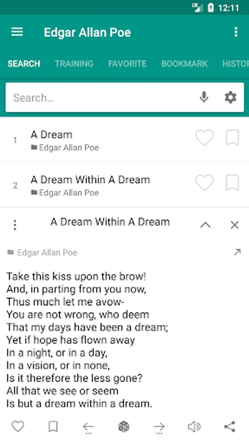 Over 44.000 great poems available for offline reading for free. There are a lot of worldwide poetry classics in one application in your phone or tablet!
