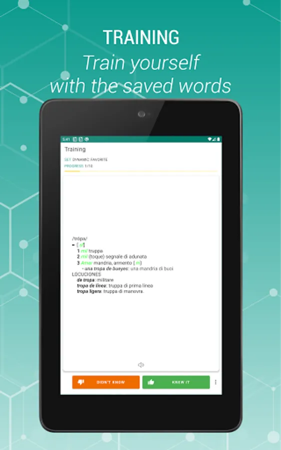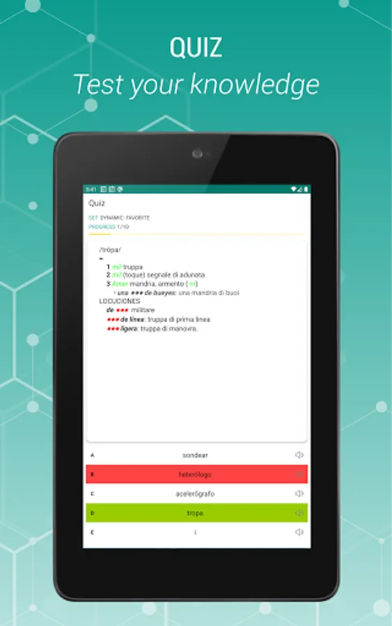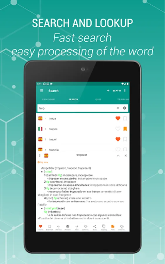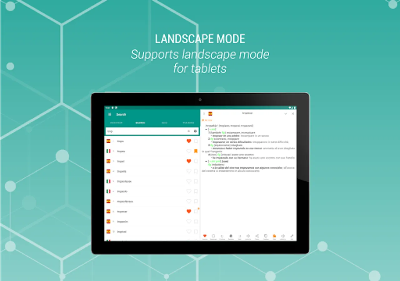 Italian-Spanish & Spanish-Italian dictionary is a free offline dictionary (vocabulary) with easy and functional user interface, covers over 123.000 words.