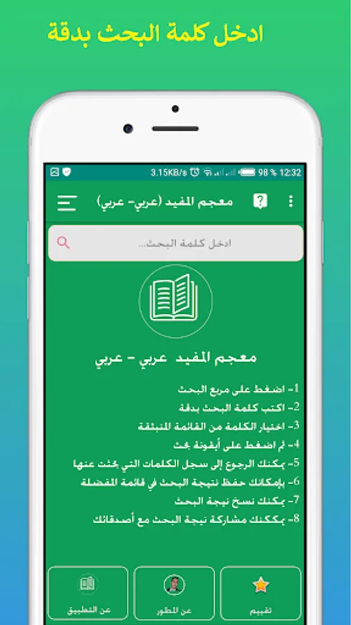 Al-Mufid dictionary in the Arabic language, Arabic-Arabic, explains the meanings of Arabic words without connecting to the Internet. It contains results from the intermediate dictionary, Al-Ghani dictionary, Al-Raed dictionary... and others