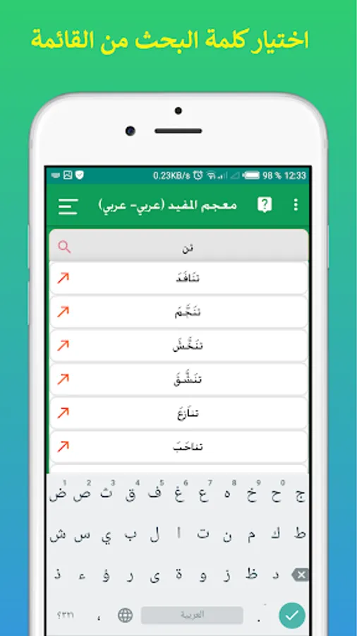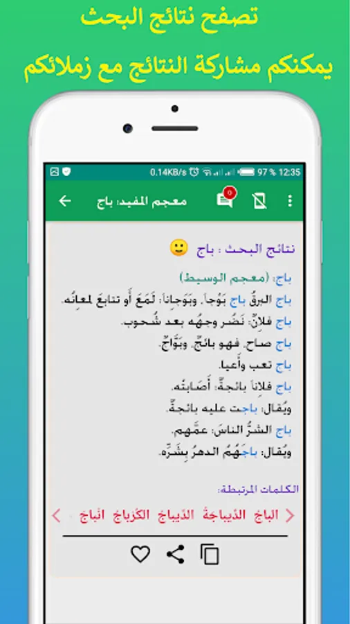 Disclaimer: This application, "Mufeed Dictionary", is an independent application that relies on information provided by an external source, which is ancient Arabic dictionaries. Users should be aware that this application does not represent any government agency, publishing house, association or any organization. All information and data provided through this application is for educational purposes and to facilitate access to scientific knowledge, and we always advise users to check information from the official and recognized source to obtain the latest and most accurate information.