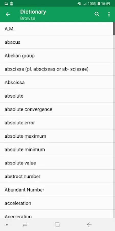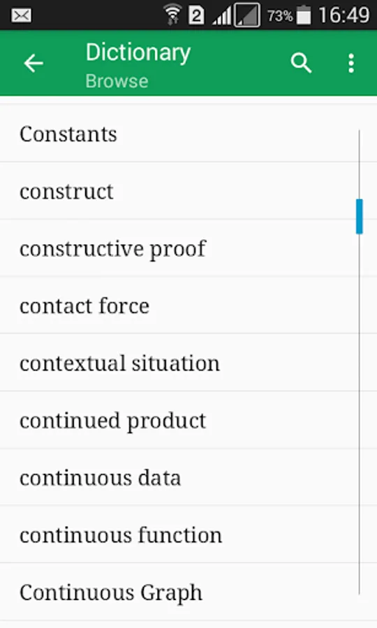 Math Dictionary Offline helps students, students, teachers, teachers, or lecturers in understanding and remembering mathematical terms. Math Dictionary Offline is equipped with a fast search system function that can find words that are desired or needed by the user.