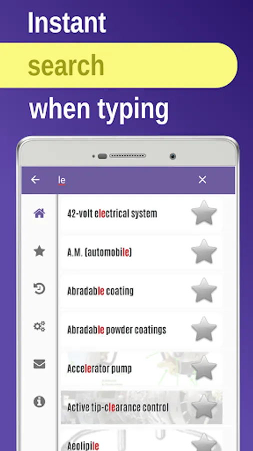 - Very quick search for descriptions. The dynamic search function will start searching for words immediately during input;