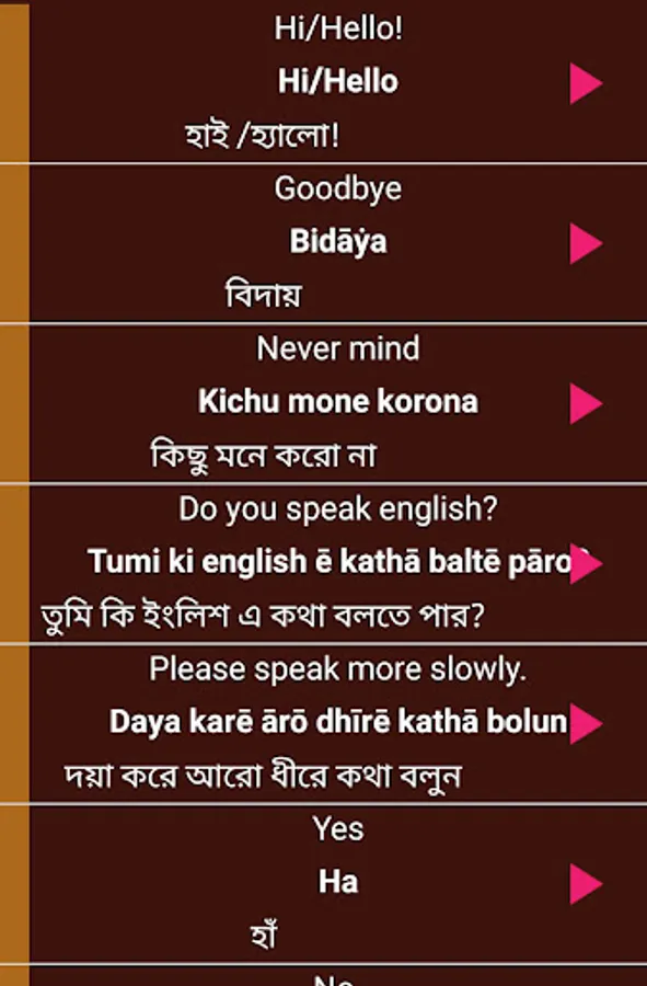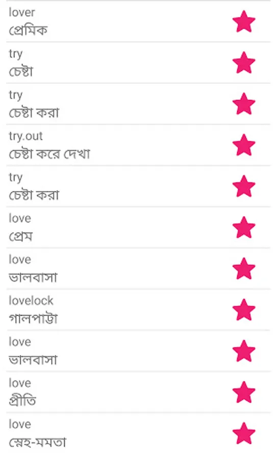 Bangla English Dictionary is an offline dictionary English to Bangla which tell us the right Bangla meanings. To find out the right English to Bengali meaning or English dictionary words just type in Bangla English dictionary and get the results even without internet availability. This new word dictionary is more than just a Bangla Dictionary this App contain English to Bengali meaning, English dictionary words and Bangla language learning games which makes this Bangla English dictionary above all other dictionary English to Bangla. Word dictionary is absolutely Free dictionary for android only, find meaning in English using Bangla Dictionary Offline which works without internet. Add word dictionary into your Bangla Dictionary with English word meaning and Bangla meaning. This Bangla dictionary is suitable for any level of leaner. Bookmark favorite words and meaning in English into free dictionary. Improve your pronunciation and learn Bangla words, phrases and learn counting in Bangla Language.