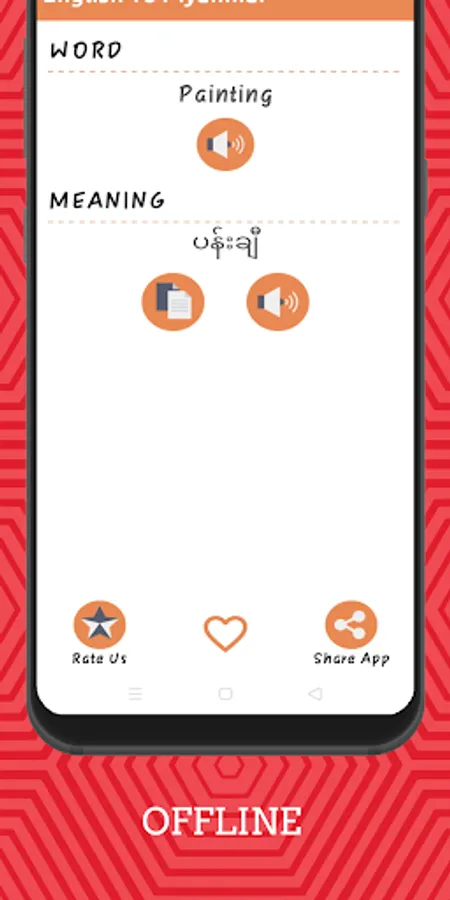Having network issues in a different place other than home?? Don't know the local words and living in a different country?? Well!! Well!! Well!! Our English to Myanmar Dictionary has way better services than any other dictionary. We provide you the offline mode through which you can use the dictionary wherever you want just with a mobile phone. A solution when you're running out of data and you have to finish the language project whatever it takes.