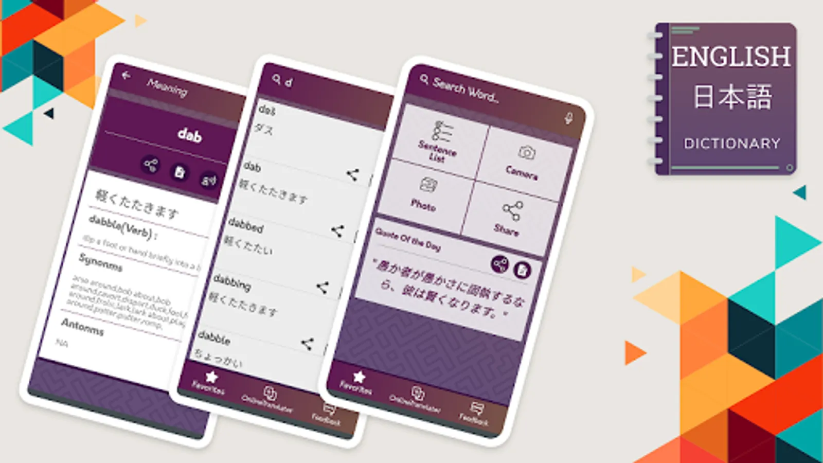 • Japanese dictionary is best app to find meaning and definition in english for Japanese words. Translate Japanese words to English quickly using this app.