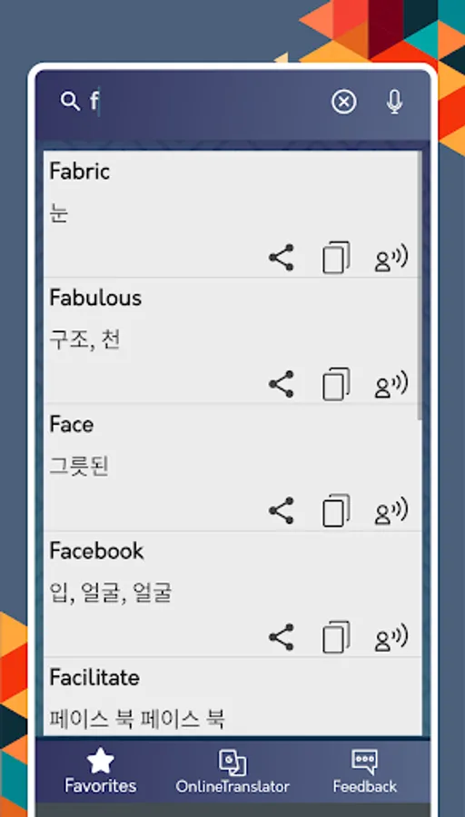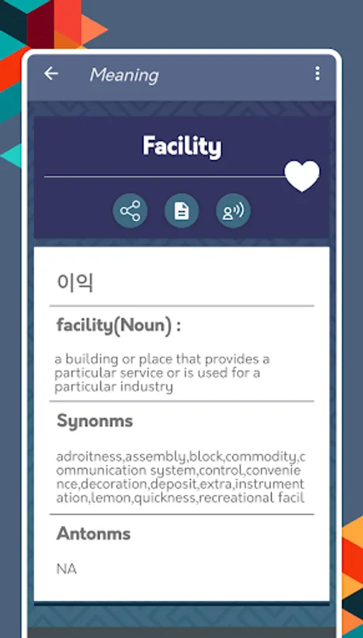 A smartly designed lightweight app works offline and gives faster results using the search box. Share words with your friends and others using this dictionary app.