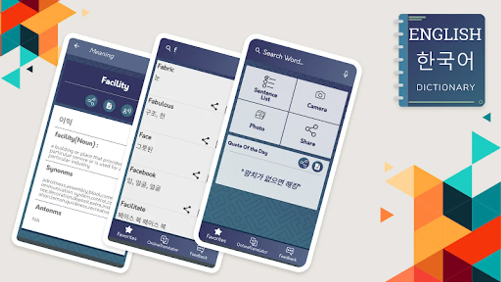 Every day you'll receive word of the day to enhance your vocabulary to improve your English means Easy to Learn English. You can learn the English language very quickly and easily from your Korean language this utility application (Korean Dictionary). The dictionary contains words with meaning, definition, usage example and antonyms. This Application ( English to Korean Dictionary) Have daily Speaking common sentences to improve your spoken English too. Korean dictionary always notifies to learn daily new words & sentences it's making some different from other students. This application ( Korean Dictionary ) Have OCR feature which can easily identify Text from Images.