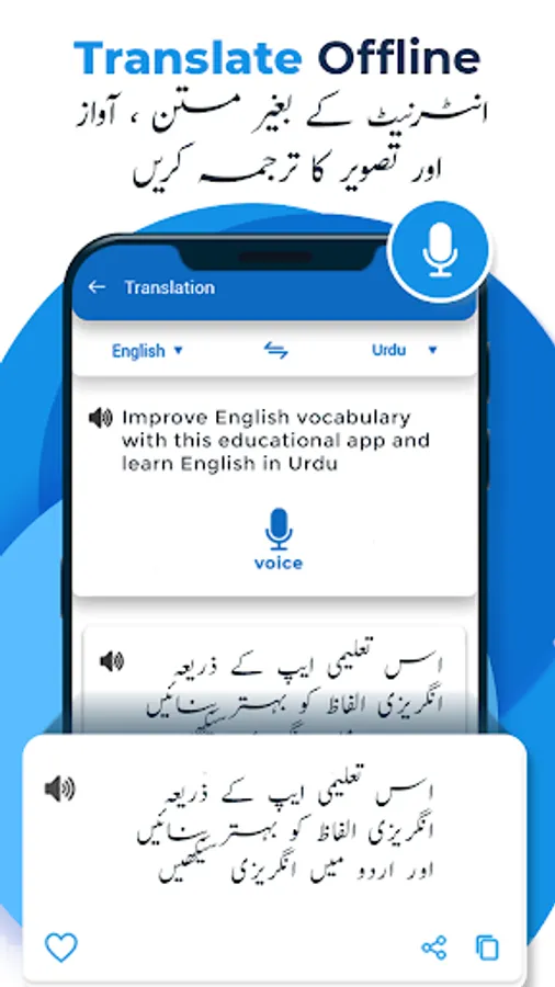English to Urdu Translator app have Offline Translator even Picture Translator or Camera Translator that give meaning in Urdu. A complete offline dictionary English to Urdu . You can Translate English to Urdu and Urdu to English as well.