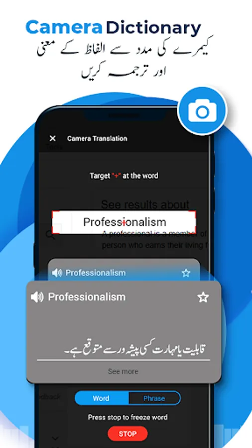 Picture translator and camera dictionary English to Urdu. Urdu to English camera dictionary and Urdu to English camera translator offline.