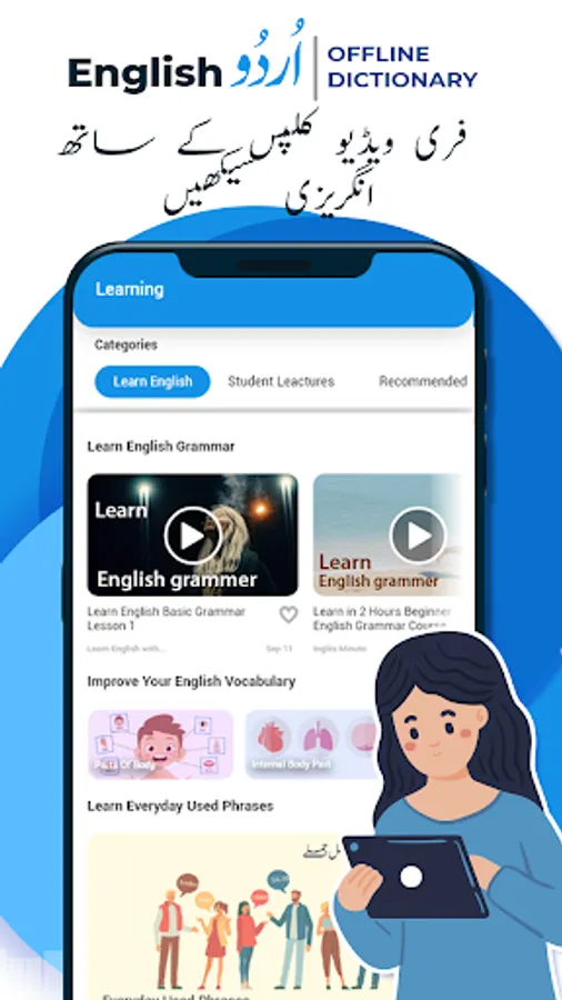 100% Free Offline English to Urdu advance dictionary. Improve English vocabulary with this educational app and learn English in Urdu. Learn English tenses and learn English grammar in Urdu .