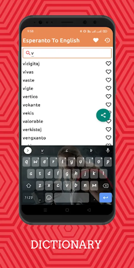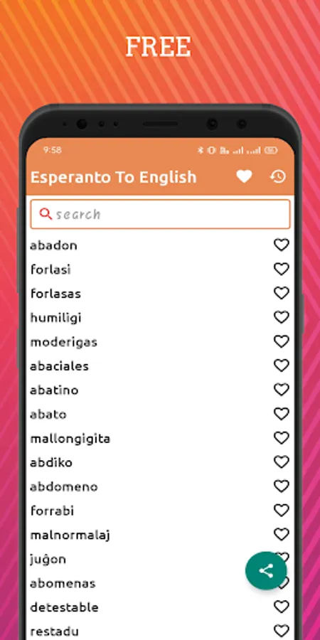 You can have a most loved rundown in the Esperanto -English dictionary moreover. The Esperanto Words will turn into your top choice during the utilization of the application, you can keep them as your favorite ones. In the Right hand of each word, a straightforward heart-molded symbol is there. Tap on the heart symbol and see it becoming red in shading actually like Insta.