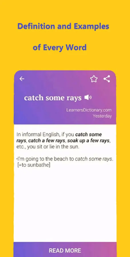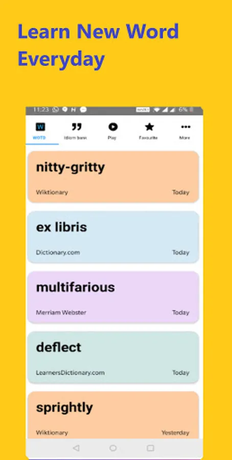 This app helps you learn new words, improve your vocabulary, and explore language. Download this app to Improve your English vocab and learn new English words without causing information overload.