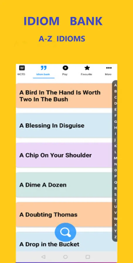 Explore new challenging idioms and phrases. Learn them and express yourself better. All the idioms and phrases are chosen carefully and from top sources. You can Bookmark your favourite idiom or phrase to quickly access them later.
