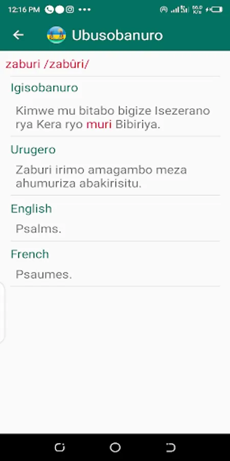 Kinyarwanda Dictionary App, will help people to know the meaning of Kinyarwanda words. It also adds English and French translations.