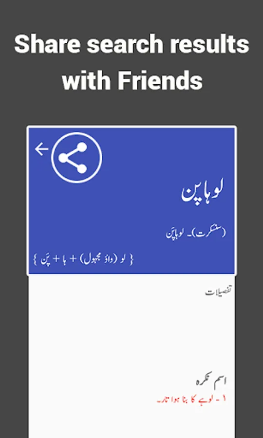 * Share word and meaning from urdu Lughat: Urdu To Urdu Dictionary with friends.