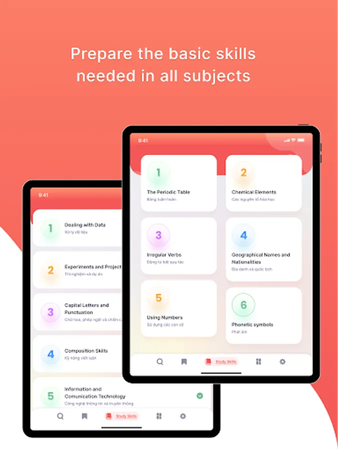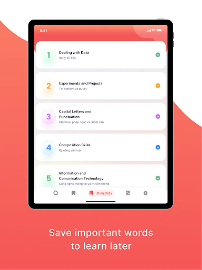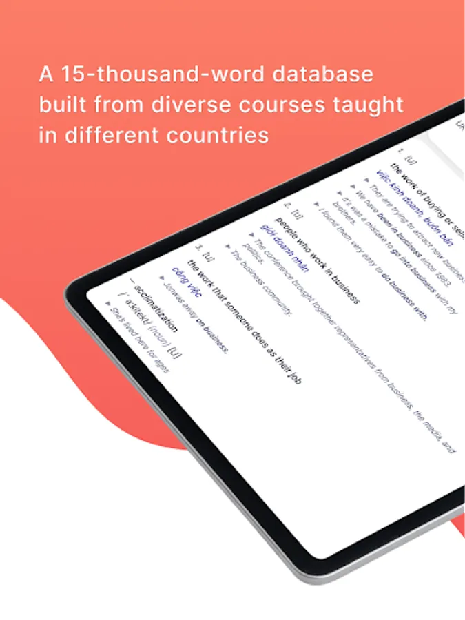 - Focus on vocabulary of subjects with 15,000 words emphasized