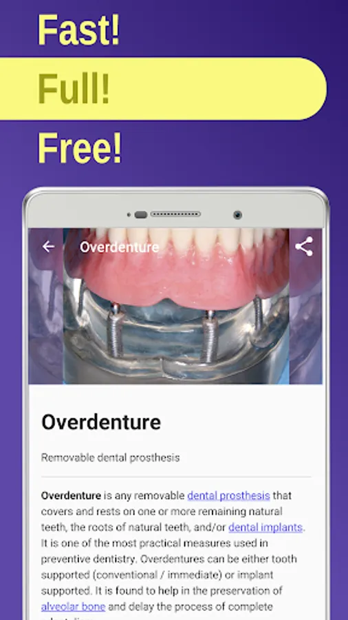 A dental implant (also known as an endosseous implant or fixture) is a prosthesis that interfaces with the bone of the jaw or skull to support a dental prosthesis such as a crown, bridge, denture, or facial prosthesis or to act as an orthodontic anchor. The basis for modern dental implants is a biological process called osseointegration, in which materials such as titanium or zirconia form an intimate bond to the bone.