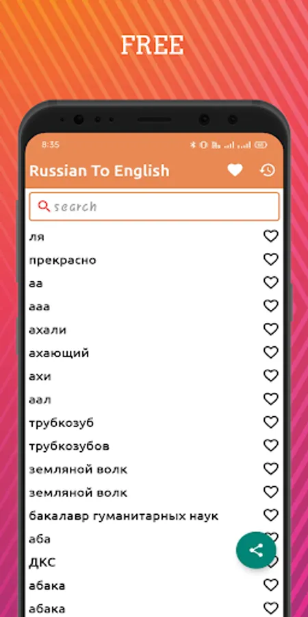 You can have a most loved rundown in the Russian -English dictionary moreover. The Russian Words which will turn into your top choice during the utilization of the application, you can keep them as your favorite ones. In the Right hand of each word, a straightforward heart-molded symbol is there. Tap on the heart symbol and see it becoming red in shading actually like Insta.