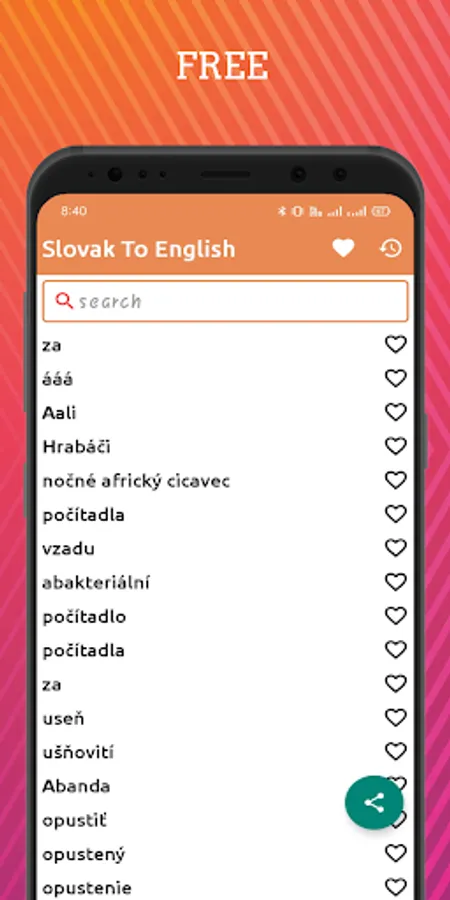 You can have a most loved rundown in the Slovak -English dictionary moreover. The Slovak Words which will turn into your top choice during the utilization of the application, you can keep them as your favorite ones. In the Right hand of each word, a straightforward heart-molded symbol is there. Tap on the heart symbol and see it becoming red in shading actually like Insta.