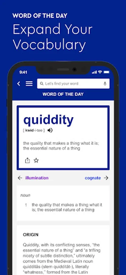 - Voice search – Find the definitions you’re looking for anywhere, anytime