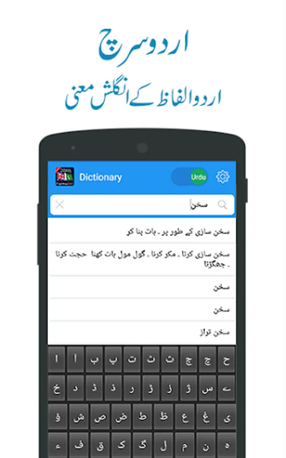 English to Urdu – In addition to giving meanings from urdu to English, the app also gives the default and common functionality of English to urdu words meanings. Therefore, those who want to find the meanings in conventional way can find urdu meanings of English words in this dictionary.