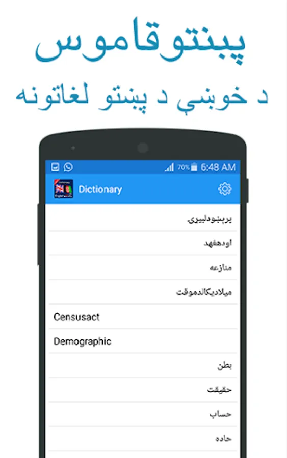 Pashto to English Dictionary – The primary feature of this dictionary English to pashto is that it gives you the option of finding English meanings of pashto words. All you have to do is to use the pashto keyboard offered in the app and put in the pashto word for which you want to know the English meaning. The app will give you pashto English word meanings.