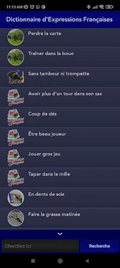 This application helps improve your level in the french language while learning new words, new expressions, and new vocabulary with every idiom.