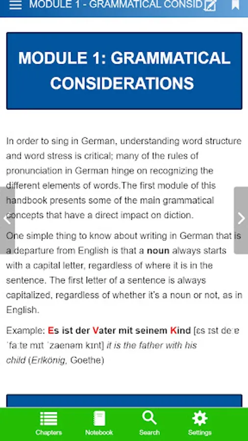 Chantez ! leads singers and coaches through a comprehensive course on French lyric diction, listing out spelling and pronunciation rules along with audio examples of word lists and texts from the operatic and art song repertoire. There are review exercises, informational videos and pop-up lessons, as well as homework assignments for each of the 13 Modules. Appendix 1 is a list of common spellings and their usual pronunciation; Appendix 2 has a list of roughly 1,000 proper names and places that appear in the French repertoire, along with their pronunciation. Access to the Handbook must be purchased at www.dictionpolice.com/Handbook
